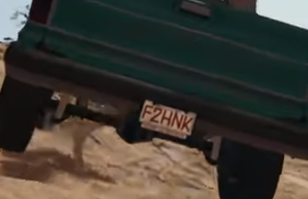 Try and find a pickup truck, then read the license plate. You’ll find: “F2HNK”.